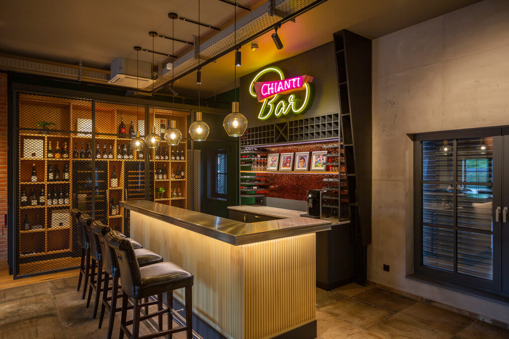 Unsere Bar mit dem originalen Schild der Hamburger Chianti Bar ist ein echter Hingucker und bildet nicht selten den Mittelpunkt so mancher Events.